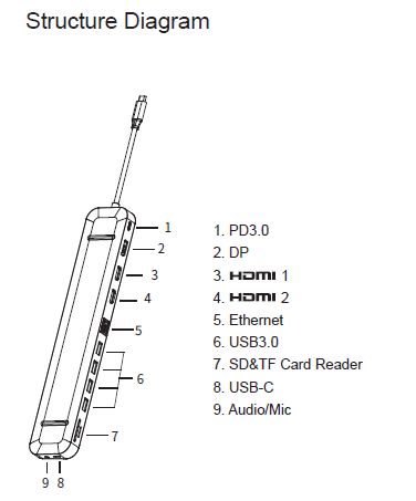 Plusonic USB-C Docking Adapter/Hub 9in1 with HDMI/DP/LAN/USB