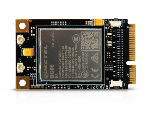 WisLink Cellular mPCIe (RAK8213) ist ein Multi-Band LTE Cat M1/Cat NB1/EGPRS Modul basierend auf dem Quectel BG96 mit einem Standard PCI Express® Formfaktor (Mini PCIe). Es bietet eine maximale Datenrate von 375Kbps Downlink und 375Kbps Uplink.