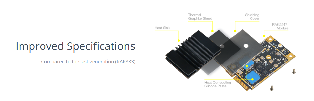 Der RAK2247 ist die Weiterentwicklung des RAK833. Er behält den gleichen kleinen Formfaktor (mPCIE) und ist genauso einfach zu integrieren wie das Vorgängermodell. Er verfügt jedoch über eine Reihe von Verbesserungen.