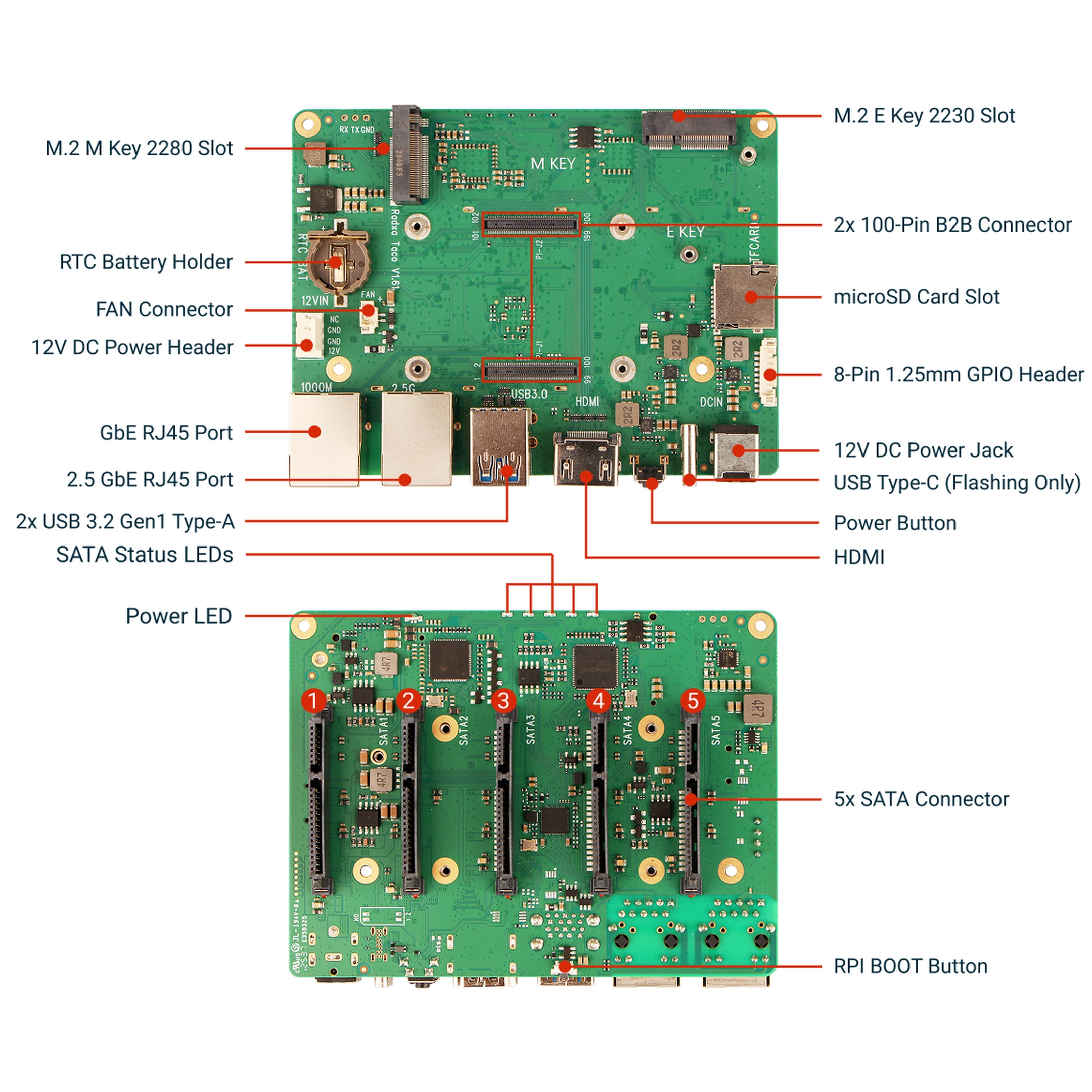 Carrier Board zur Integration des Raspberry Pi Compute Module 5 (CM5) mit erweitertem Storage-, Netzwerk- und Schnittstellenumfang.