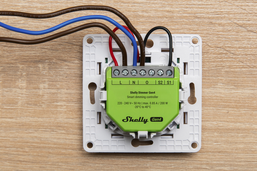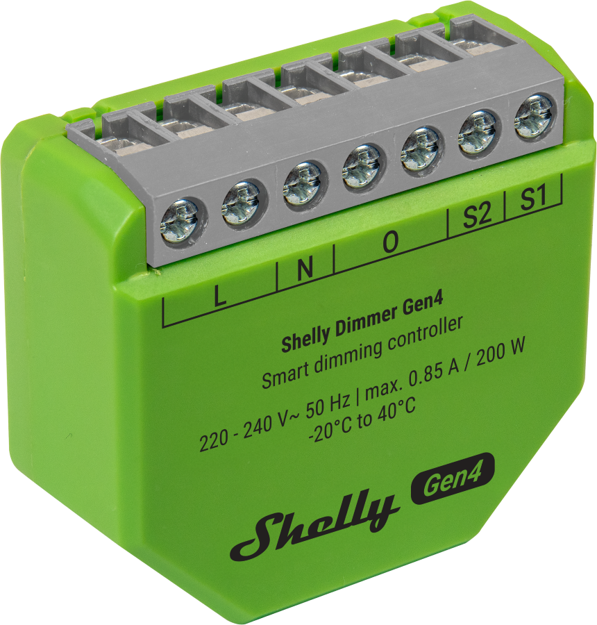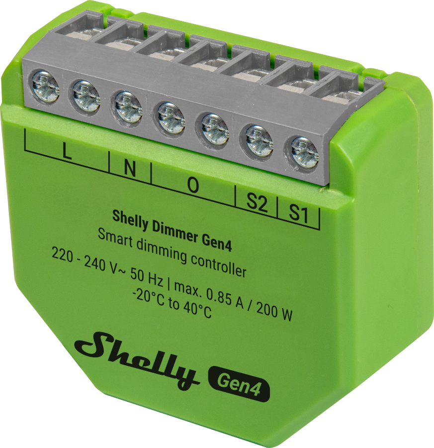 Smartes Dimmsteuergerät: neuer Shelly Chip und Multi-Protokoll-Unterstützung. Funktioniert mit oder ohne Neutralleiter, passt hinter jeden Schalter, ermöglicht volle smarte Steuerung, ohne Änderung an der bestehenden Installation.