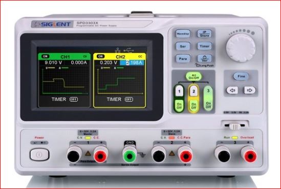 Siglent SPD3303X-E DC Labornetzgerät / Das SPD3303X-E ist ein programmierbares DC Labornetzgerät, dass Spannung, Strom und Leistung hochauflösend anzeigt.