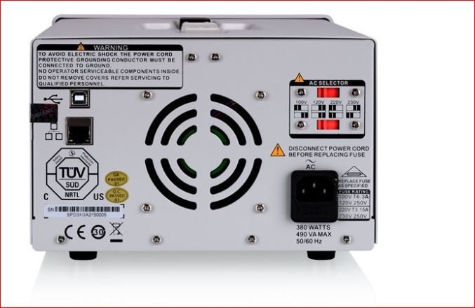 | Kanalausgabe | CH1: Spannung 0 bis 32 V, Strom 0 bis 3,2 A CH2: Spannung 0 bis 32 V, Strom 0 bis 3,2 A CH3: Spannung 2,5/3,3/5,0 V, Strom 3,2 A |