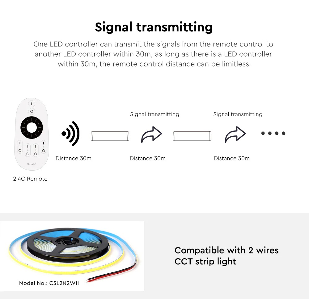 • Compatible with Mi-Light / MiBoxer 2.4GHz series remote