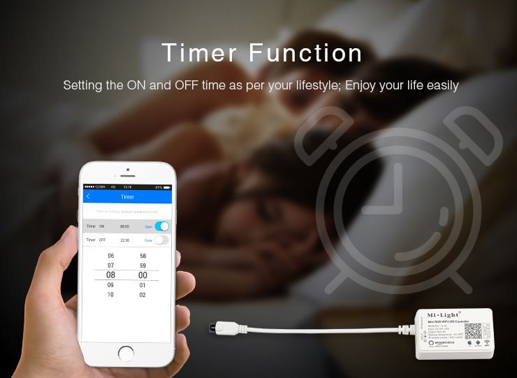 Dank der WiFi-IEEE 802.11b/g/n 2.4GHz Kommunikationsmethode oder der IR-Steuerung können Sie Ihre Beleuchtung bequem und flexibel steuern. Optimieren Sie Ihre Lichtinstallation mit dem Mini RGB WiFi LED Controller und genießen Sie die einfache und effektive Steuerung Ihrer LED-Systeme.