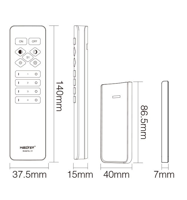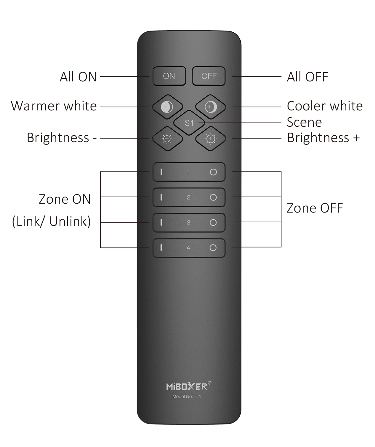 Produktinformationen "Synergy 21 LED Fernbedienung 2,4GHz 4 Zonen dual white (CCT) *Milight/Miboxer*"