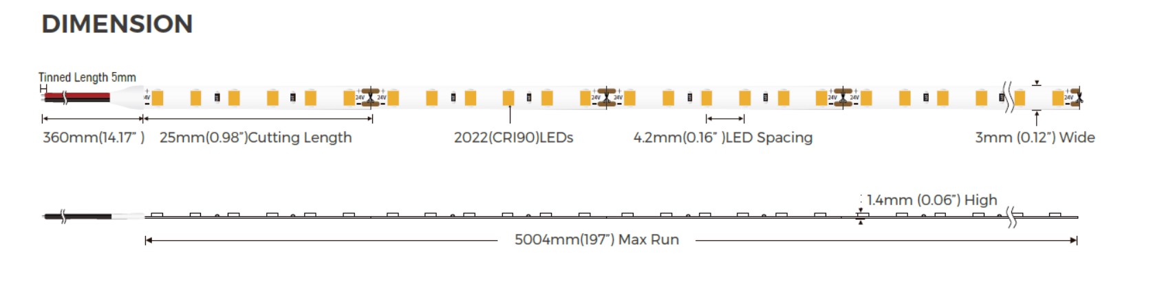 Maße LED Strip: 5000*3*2 mm
