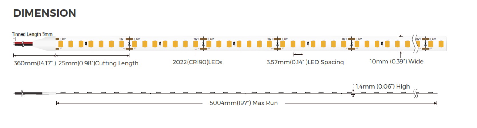 Maße LED Strip: 5000*10*2 mm
