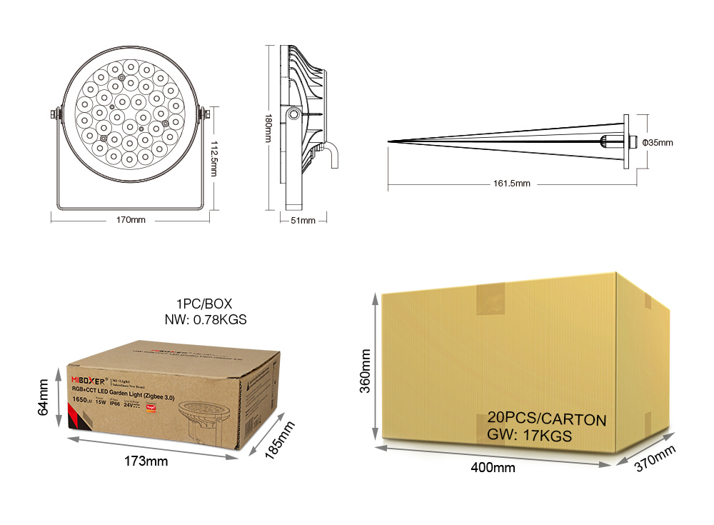 15W RGB+CCT LED Garden Light (Zigbee 3.0) DC24V |