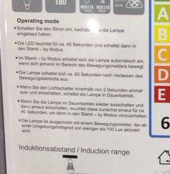 Der Helligkeitssensor aktiviert die Lampe ab 100Lux.