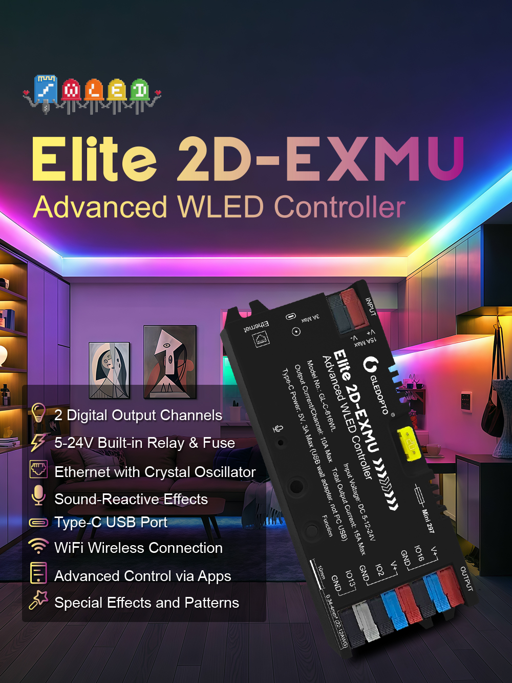 Produktinformationen "Synergy 21 LED Serie EOS 55 WLED Controller ESP32 Pixel Elite 2D-EXMU 5/12/24V mit RJ-45"