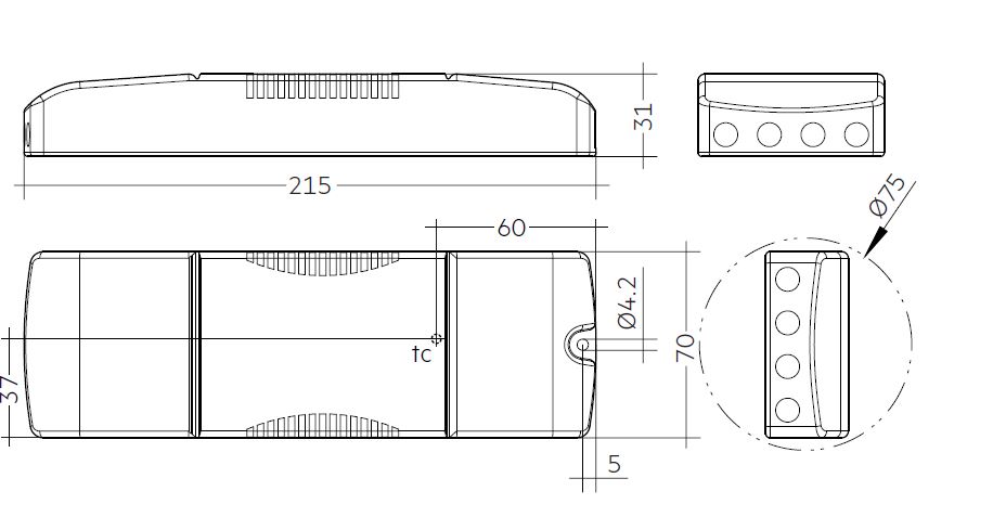 LxBxH 215x70x31mm