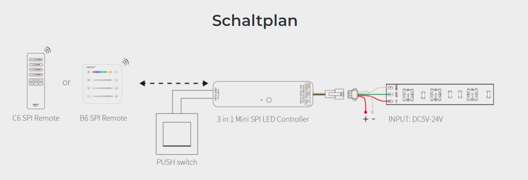 3 in 1 = Einzelfarbe + RGB + RGBW SPI-Controller