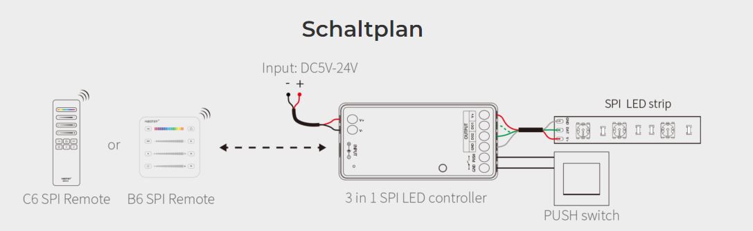 3 in 1 = Einzelfarbe + RGB + RGBW SPI-Controller