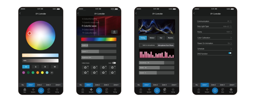- 5-in-1 Steuerung: Kompatibel mit Single Color, CCT, RGB, RGBW und RGB+CCT SPI LED-Strips.