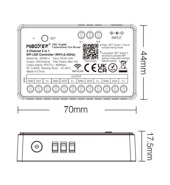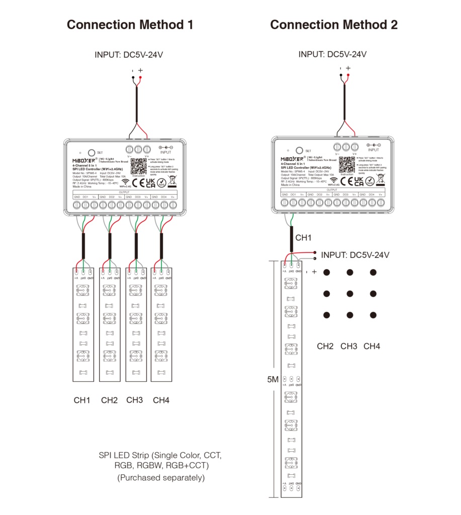 SPIW5-4 – 4-Kanal 5-in-1 SPI LED Controller mit WiFi & 2.4GHz Funk