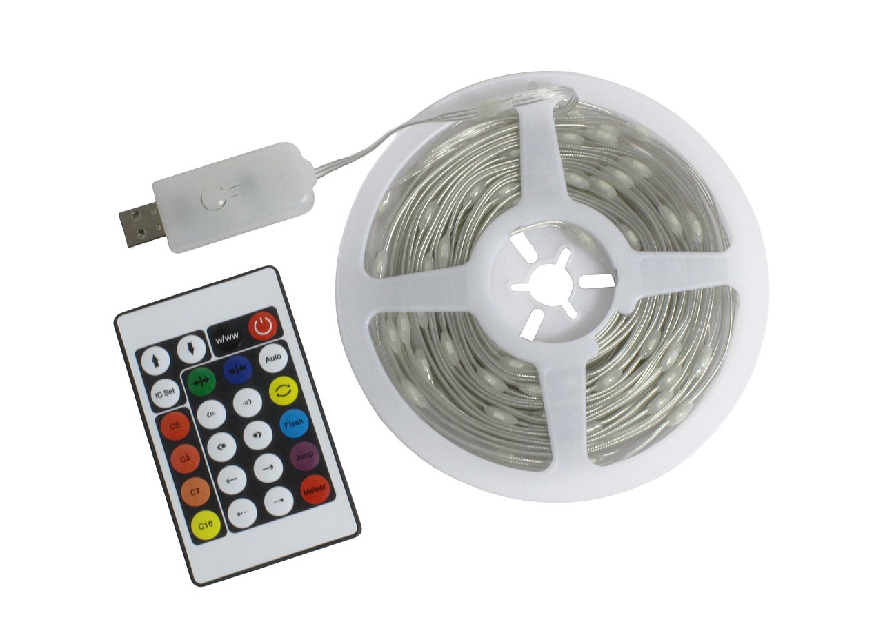 Lieferumfang: 10 m RGBW LED-Lichterkette (100 LEDs) | USB-Controller IP65 | IR-Fernbedienung