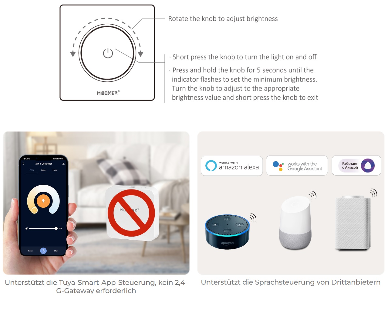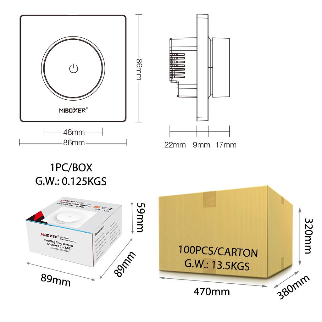 Unterstützt die Steuerung von herkömmlichen Glühlampen, Halogenlampen, dimmbaren Triac-LED-Lampen.