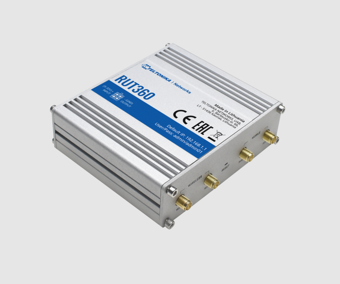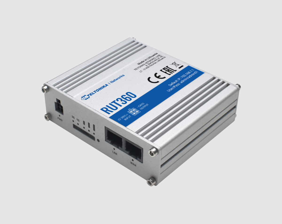 - RUT360 ist eine aktualisierte Version unseres Allzeit-Bestsellers RUT240. Dieser kompakte industrielle Mobilfunk-Router bietet die Möglichkeit, sich über Mobilfunk-, WLAN- und kabelgebundene Netzwerke mit dem Internet zu verbinden.