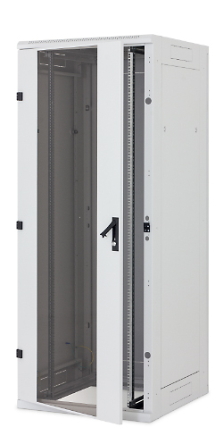 Zerlegbarer Standschrank für Belastung 1200kg, erweiterbar bis auf 1500kg in Stahlblechausführung, IP 20. Luftschlitze seitlich im Dach- (Lüftungsdom) und Bodenteil. Verblendete Kabeldurchführungen und Montageplätze für Belüftungseinheit im Dachteil. Bodenteil geöffnet. Das abnehmbare Dachteil ermöglicht den Ein-/Abbau von Geräten, ohne dass die installierten Kabel demontiert werden mu?ssen. Alle Teile zusammengeerdet. Sternpunkt vormontiert, zwei Paar (ab Schranktiefe 900 mm drei Paar) 19" vertikale Montageschienen, verzinkt, verstellbar. Alle Höheneinheiten an den Montageschienen gekennzeichnet und gegenläufig durchnummeriert . Im Beipack: 16 St. Käfigmuttern mit Schrauben und Unterlegscheiben, 4 St Nivellierfüße , Bürstenleistensatz
