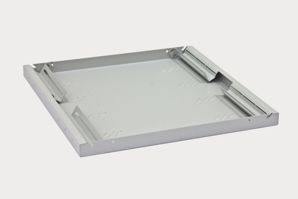 Stahlblech, incl.Montagematerial, RAL7035 Lichtgrau, vorne und hinten befestigt, 1HE, bis 50Kg, Einbautiefe 230-450mm(Profilabstand),
