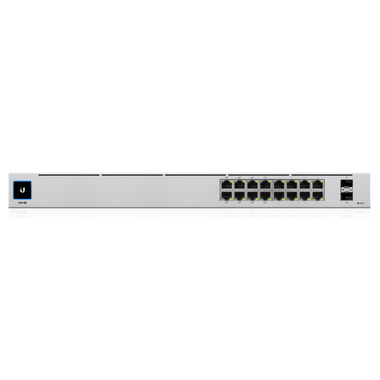 Ubiquiti Switch smart managed Layer2 18 Port • 16x GbE • PoE Budget 42W • 8x PoE at • 2x SFP • 19" • Lüfterlos • UniFi • USW-16-POE
