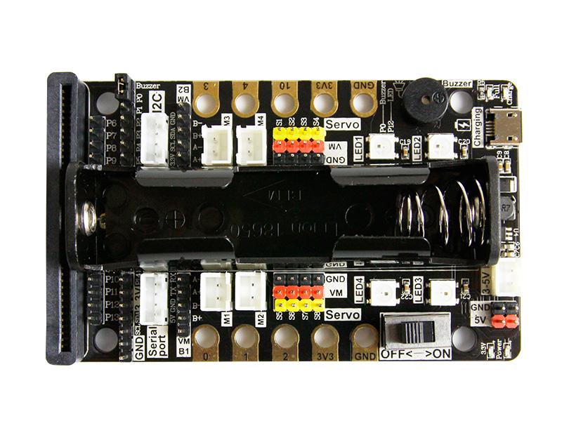 - Onboard content is rich, micro:bit socket, programmable RGB lights, buzzer, and support IIC, serial communication.
